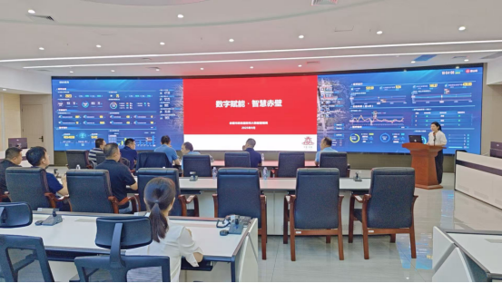 考察团首先到达赤壁市政府服务中心,由市政数局局长余新华陪同,在参观完一楼政务大厅后,考察团一行前往四楼调研赤壁市城市大脑运营指挥中心建设情况,市大数据总工程师孙惢对城市大脑运营指挥做了详细介绍,城市大脑运营指挥中心项目是智慧赤壁建设的重点项目之一,包括城市大脑平台、典型应用场景和实体指挥中心场所的建设工作。该项目全面整合了政务大数据管理与服务、基层社会治理事件调度与评价管理、重大事件协同指挥与调度、城市运行态势综合分析等十大功能。