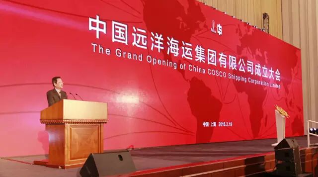 2月18日,中国远洋海运集团有限公司在上海正式宣告成立。中共中央政治局委员、上海市委书记韩正,国务院国资委党委书记张毅出席成立大会并共同转动舵轮为中国远洋海运集团启航。上海市委副书记、上海市人民政府市长杨雄,交通运输部副部长何建中,国务院国资委党委副书记、副主任张喜武,分别在成立大会上发表讲话,高度肯定了此次重组整合的意义,并对新集团致以美好的祝愿。中国远洋海运集团董事长、党组书记许立荣在大会上致辞。国家有关部委、上海市、天津市、国务院驻中国远洋海运集团监事会等有关领导,部分中央企业负责人,中外客户、合作伙伴、行业协会代表,以及交通运输部、中远集团、中海集团部分老领导也应邀参加了成立大会。中国远洋海运集团董事、总经理、党组副书记万敏主持了成立大会。