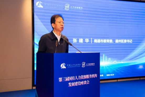31日上午,由中国人才交流协会秘书长丁国杰主持会议,首先南通市委常委、通州区委书记张建华致辞,张书记表示,当前,南通正迈入高质量发展的加速期,比任何时候更加渴求高素质人才资源。中国人才交流协会作为人力资源服务行业的重要平台,为政府机构与人力资源服务企业之间架起了协同发展的桥梁;希望与会专家学者为南通人才发展多提真知灼见,人力资源服务机构围绕南通主导产业需求,开展更为精准、更深层次的对话合作,汇聚更多高端研发人才、高技能紧缺人才。